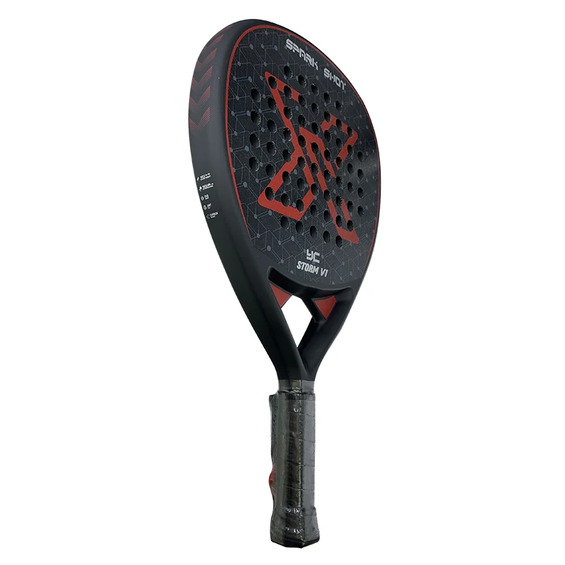 STORM V1کھیل کو تیز کرنے کے خواہاں اعلی درجے کے کھلاڑیوں کے لئے طاقت اور کنٹرول کا بہترین امتزاج پیش کرتا ہے۔ ہٹ چہرہ کاربن فائبر اور فائبر گلاس کی بہترین کارکردگی کو یکجا کرتا ہے، اس کے چہروں میں روف گرٹ اسپن نمایاں ہے، جو ہر شاٹ پر اسپن کی پیداوار کو بڑھاتا ہے۔ اس میں Ungrade Butt Cap اور Neoprene کا پٹا بھی شامل ہے، جو اسے زیادہ محفوظ اور مکمل طور پر حسب ضرورت بناتا ہے۔